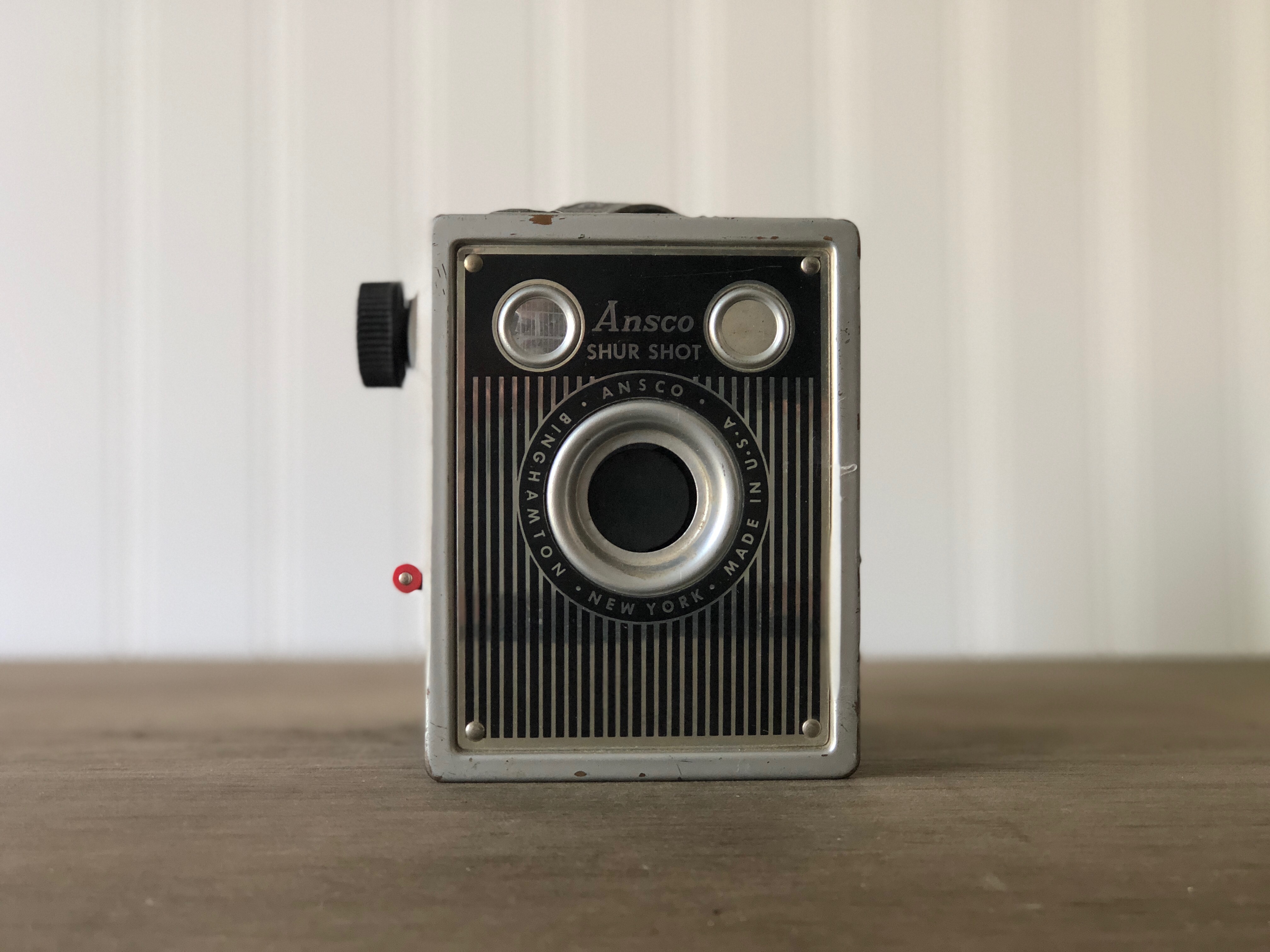 Inventory Inventory Vintage Props Ansco Shurshot Vintage Camera Search View Wishlist Ansco Shurshot Vintage Camera Price: $6.00 Description: Vintage prop camera. Quantity: 1 Dimensions: 3 x 4 x 5 Add to Wishlist Pin Item