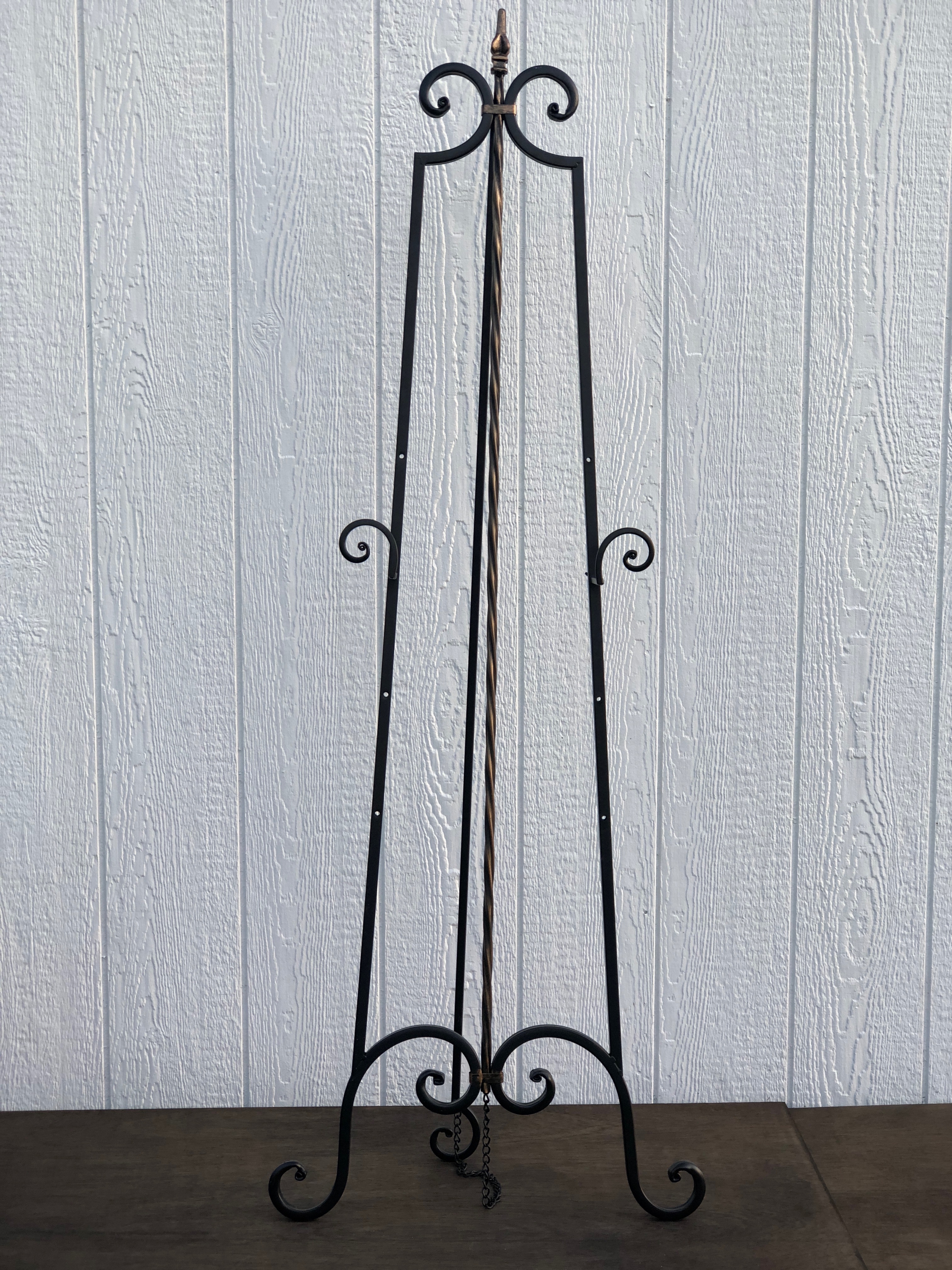 Inventory Inventory Signage & Sign Holders Black & Gold Fluer Easel Search View Wishlist Black & Gold Fluer Easel Price: $15.00 Description: Easel to display signage, seating charts, photos, chalkboards. Quantity: 1 Dimensions: 22 x 59 x 4 Add to Wishlist Pin Item