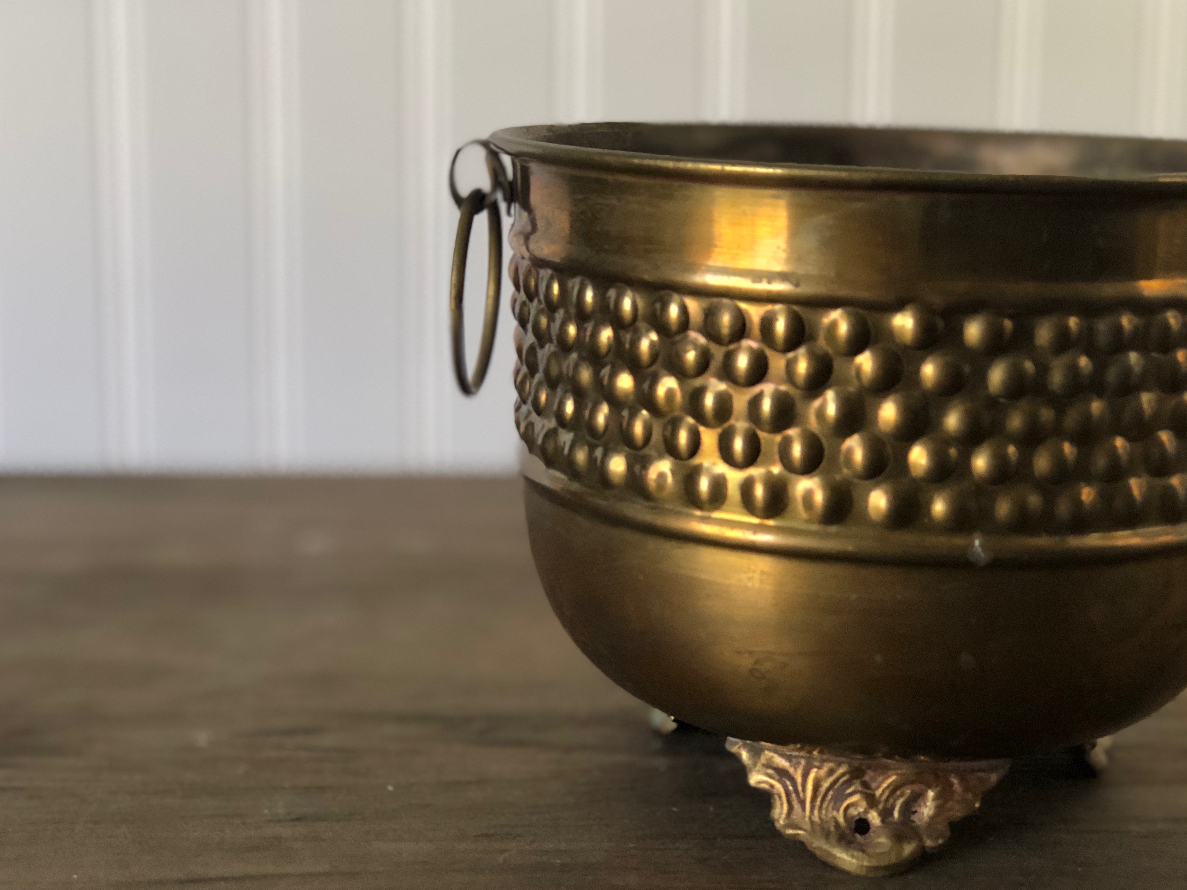 Inventory Inventory Vessels & Vases Dotted Brass Bowl Search View Wishlist Dotted Brass Bowl Price: $5.00 Description: Fill with blooms to give any table a beautiful display. Quantity: 1 Dimensions: 6 1/2 x 6 1/2 x 5 1/2 Add to Wishlist Pin Item