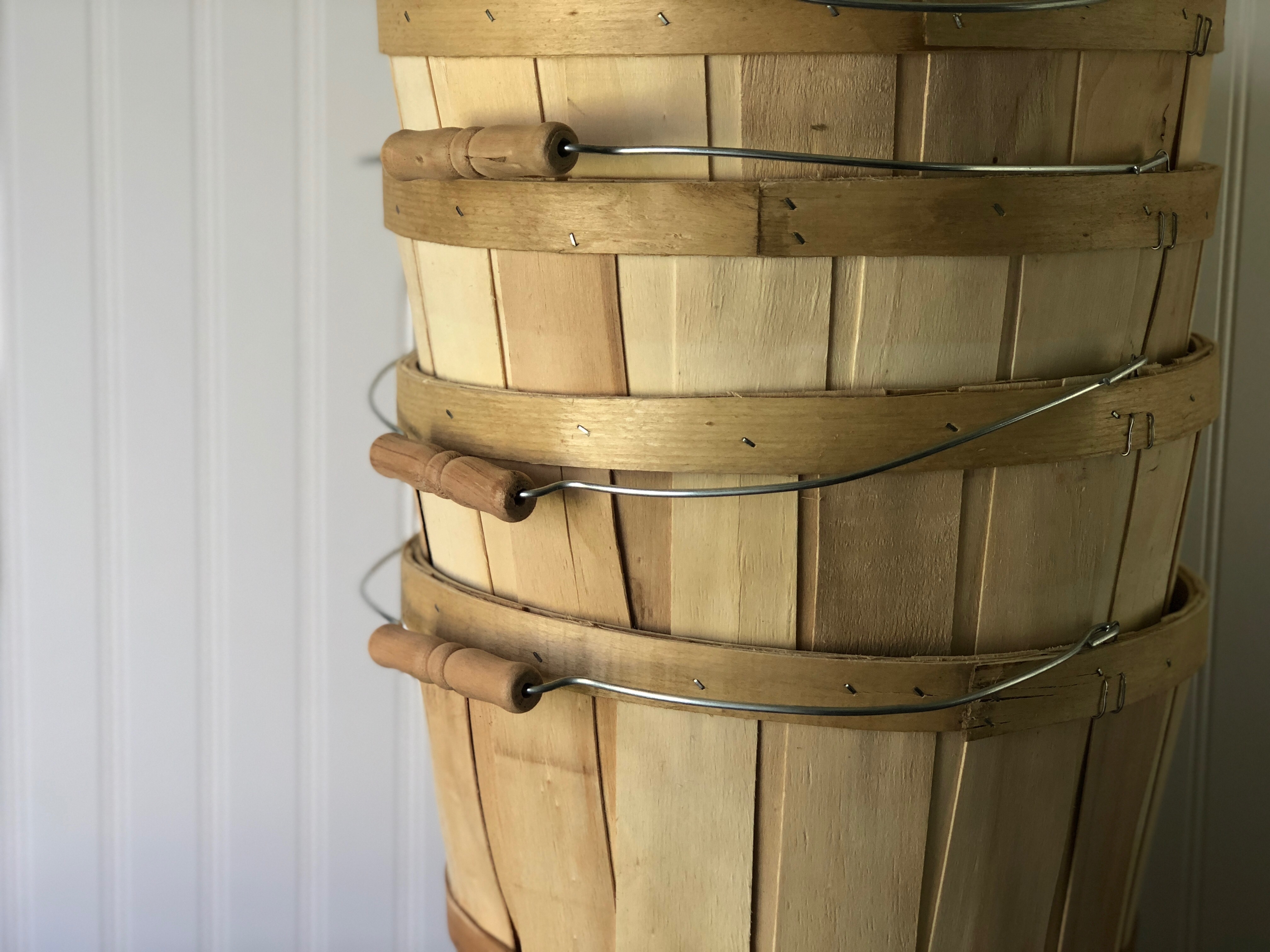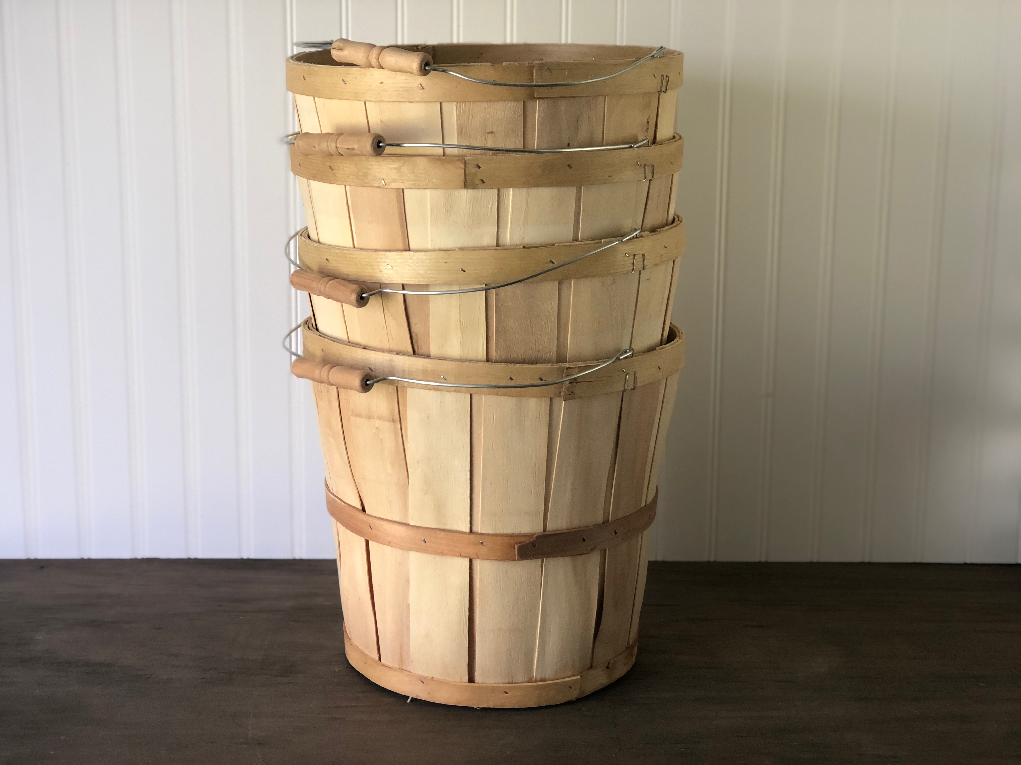 Straight from the farm these peck baskets would look great as centerpieces, isle decor, or serving bins.