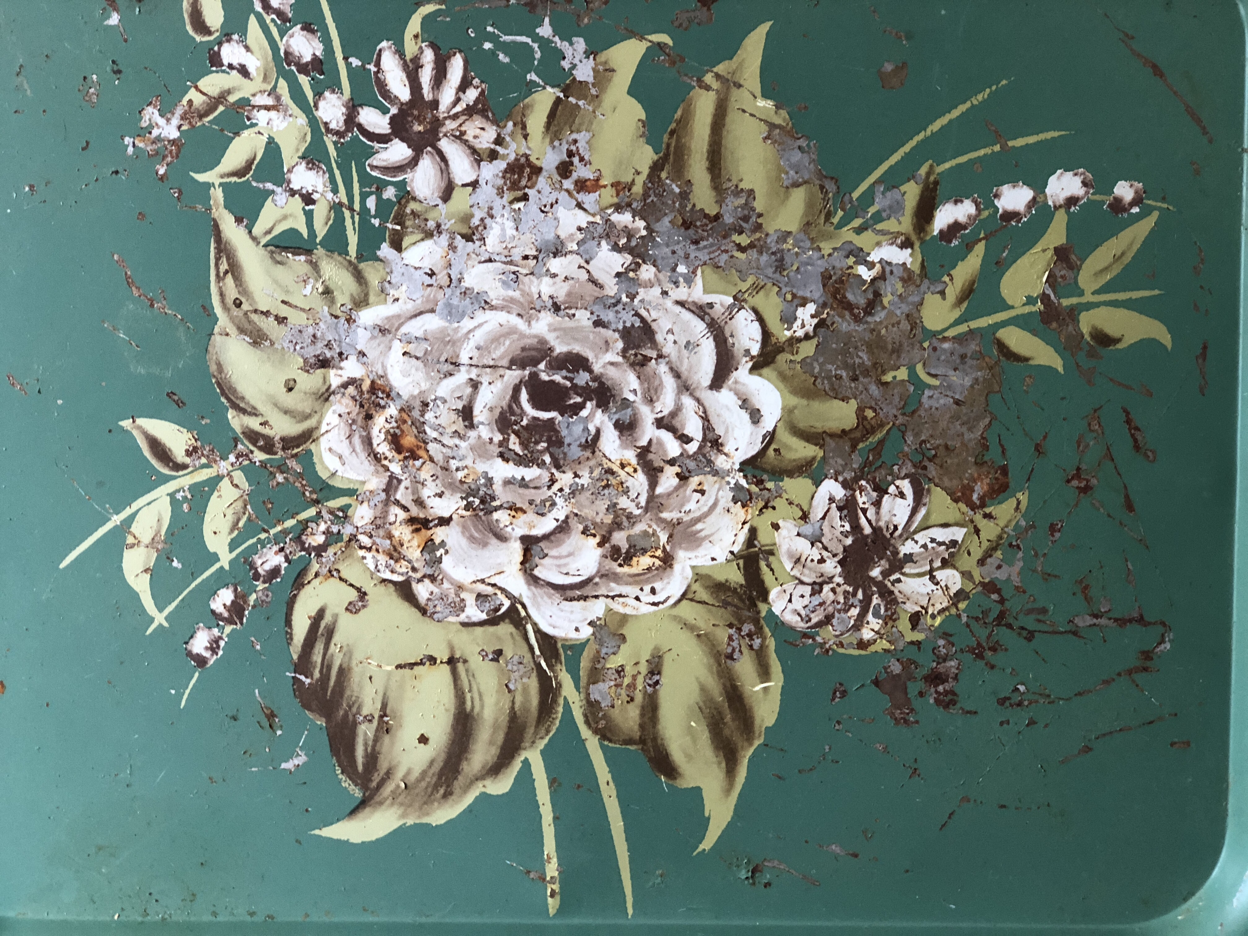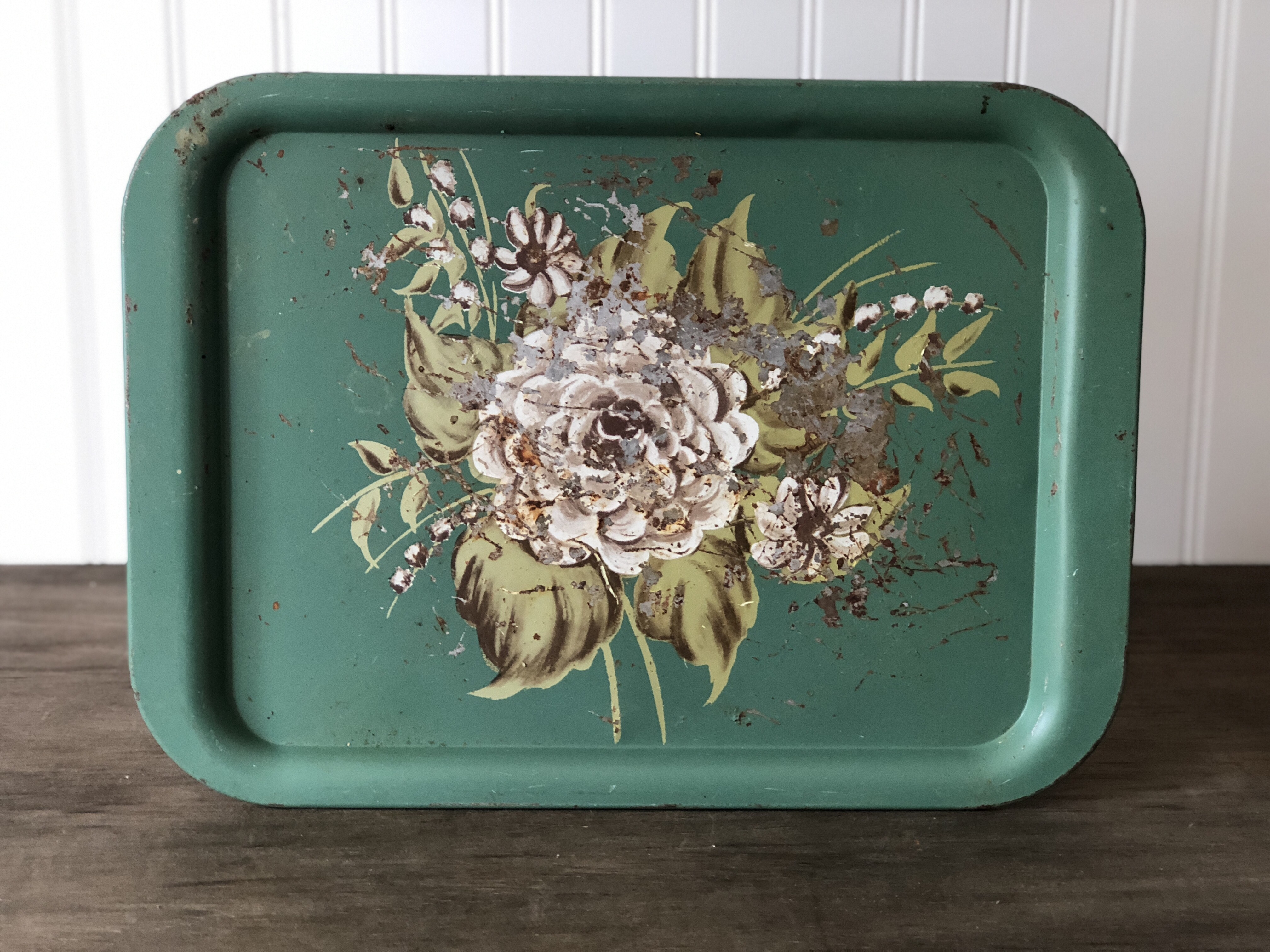 Inventory Inventory Trays Rusty Green Floral Tray Search View Wishlist Rusty Green Floral Tray Price: $3.00 Quantity: 1 Dimensions: 14 1/2 x 10 1/2 x 0 1/2 Add to Wishlist Pin Item