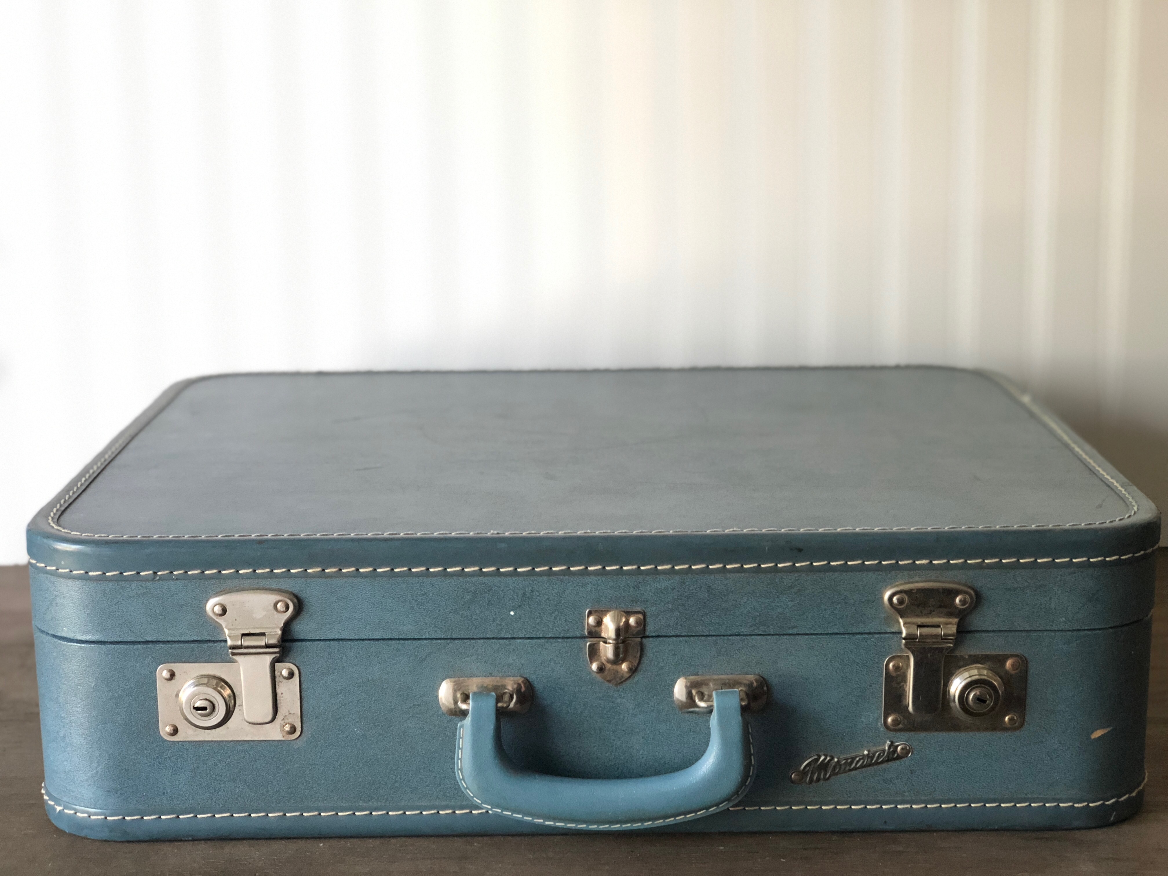 Inventory Inventory Trunks & Suitcases Vintage Blue Suitcase Search View Wishlist Vintage Blue Suitcase Price: $15.00 Description: Great vintage prop display. Quantity: 1 Dimensions: 20 x 16 x 6 Add to Wishlist Pin Item