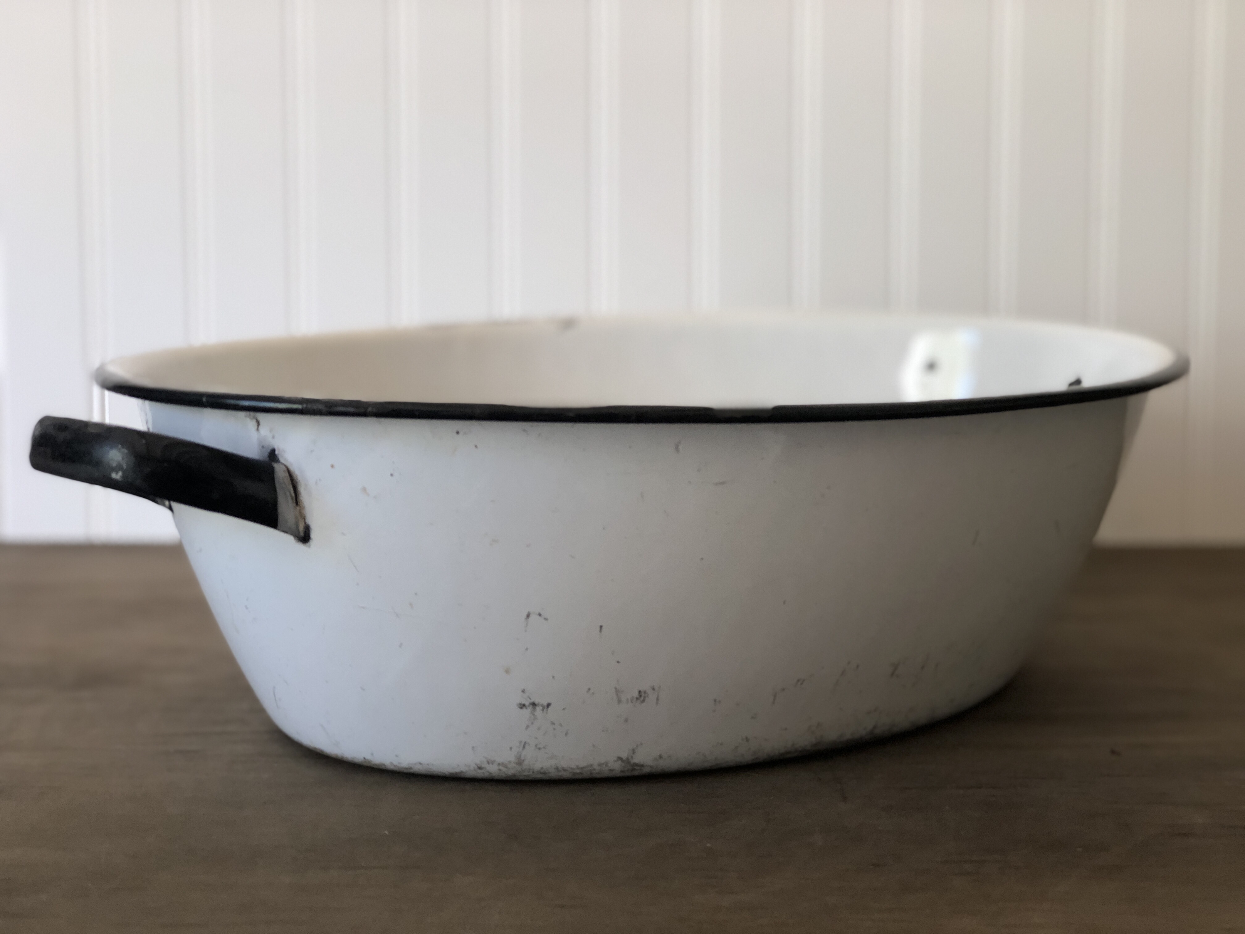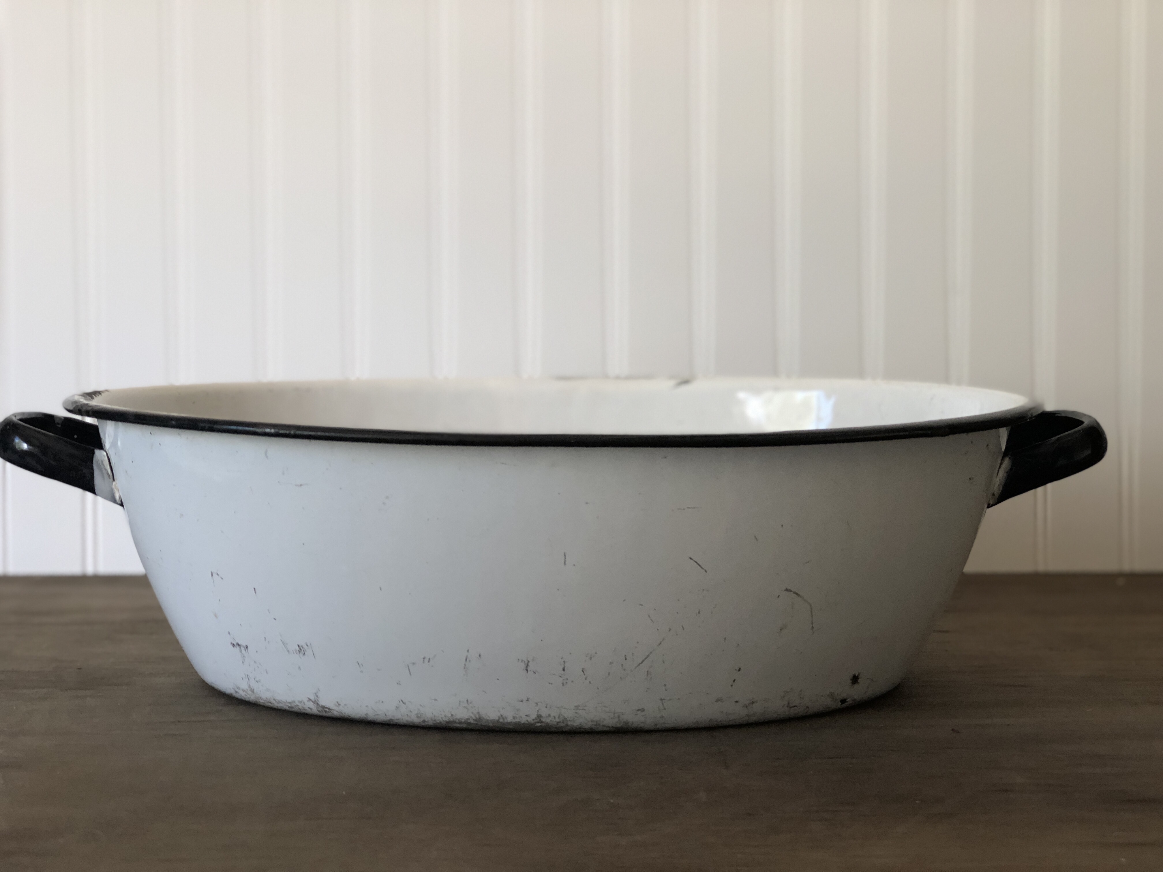 Inventory Inventory Crates & Containers Vintage Enamel Tub Search View Wishlist Vintage Enamel Tub Price: $5.00 Quantity: 1 Dimensions: 19 x 13 x 5 1/2 Add to Wishlist Pin Item