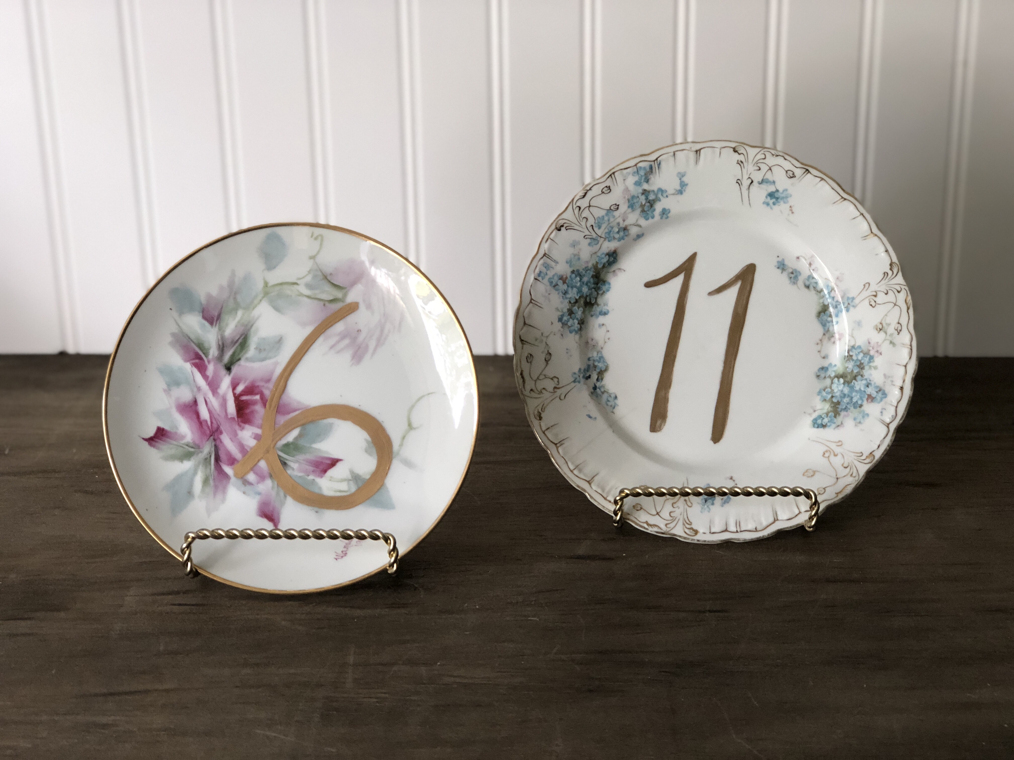 Inventory Inventory Signage & Sign Holders Vintage Plate Table Numbers Search View Wishlist Vintage Plate Table Numbers Price: $3.00 Description: Add some vintage charm with these hand panted china plate table numbers. Rental includes plate stand. Quantity: 13 Add to Wishlist Pin Item