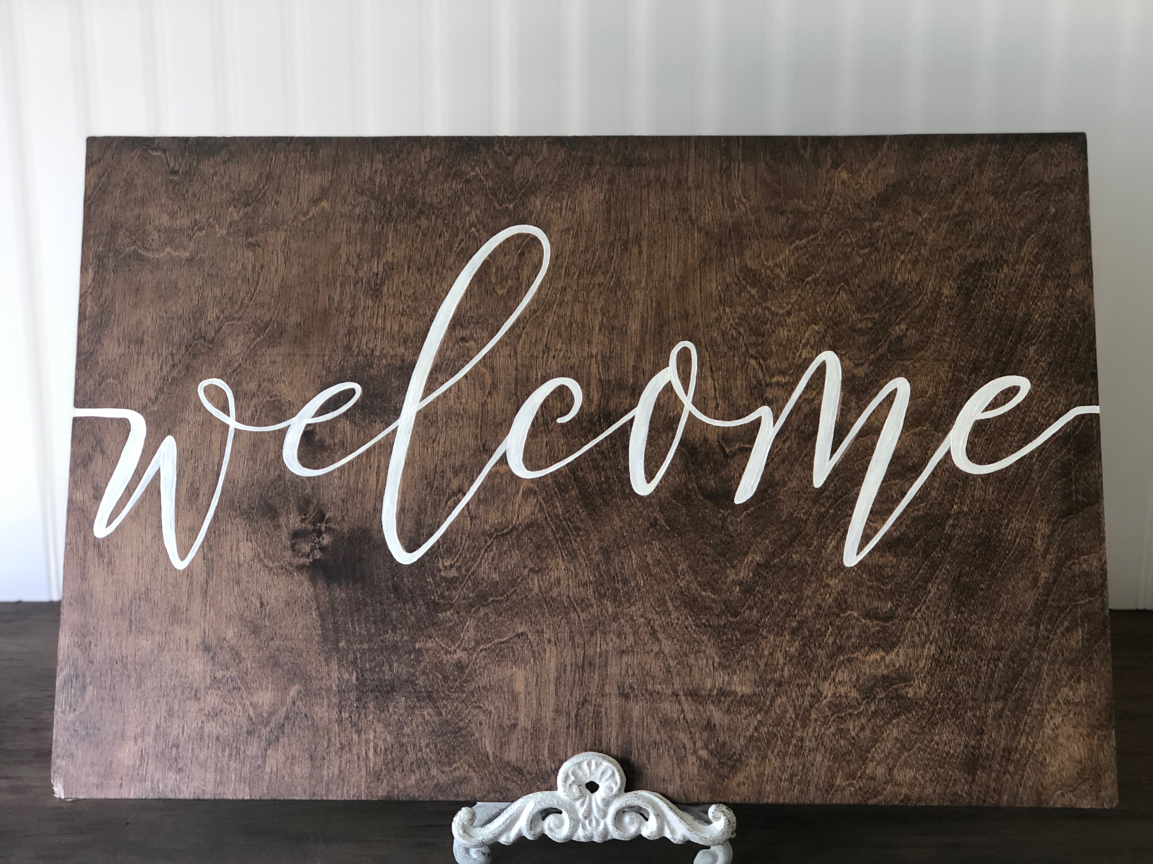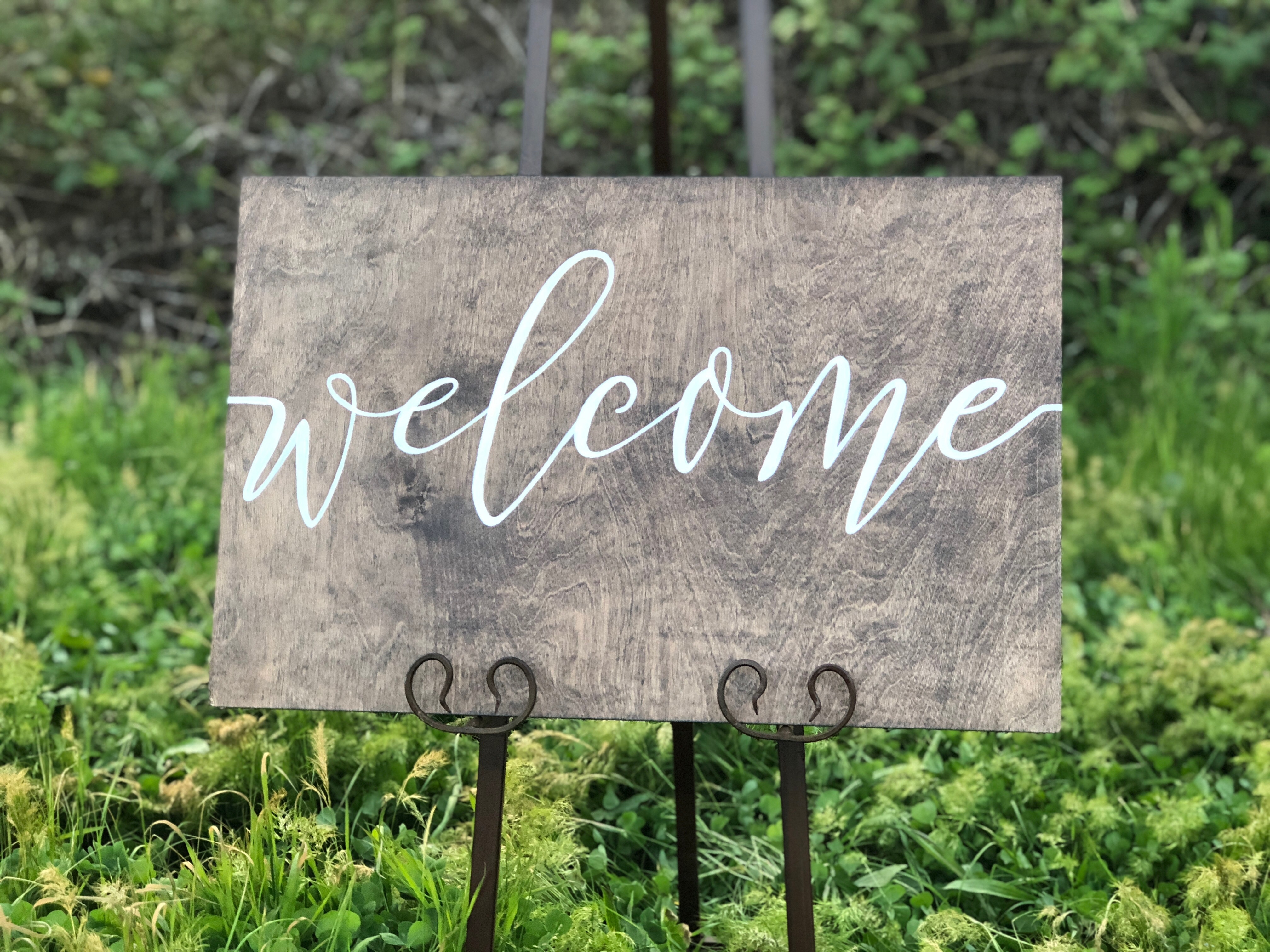 Inventory Inventory Signage & Sign Holders Welcome Sign Search View Wishlist Welcome Sign Price: $10.00 Description: Welcome your guests with this beautiful hand painted Welcome sign. Quantity: 1 Dimensions: 24 x 16 x 14 Add to Wishlist Pin Item