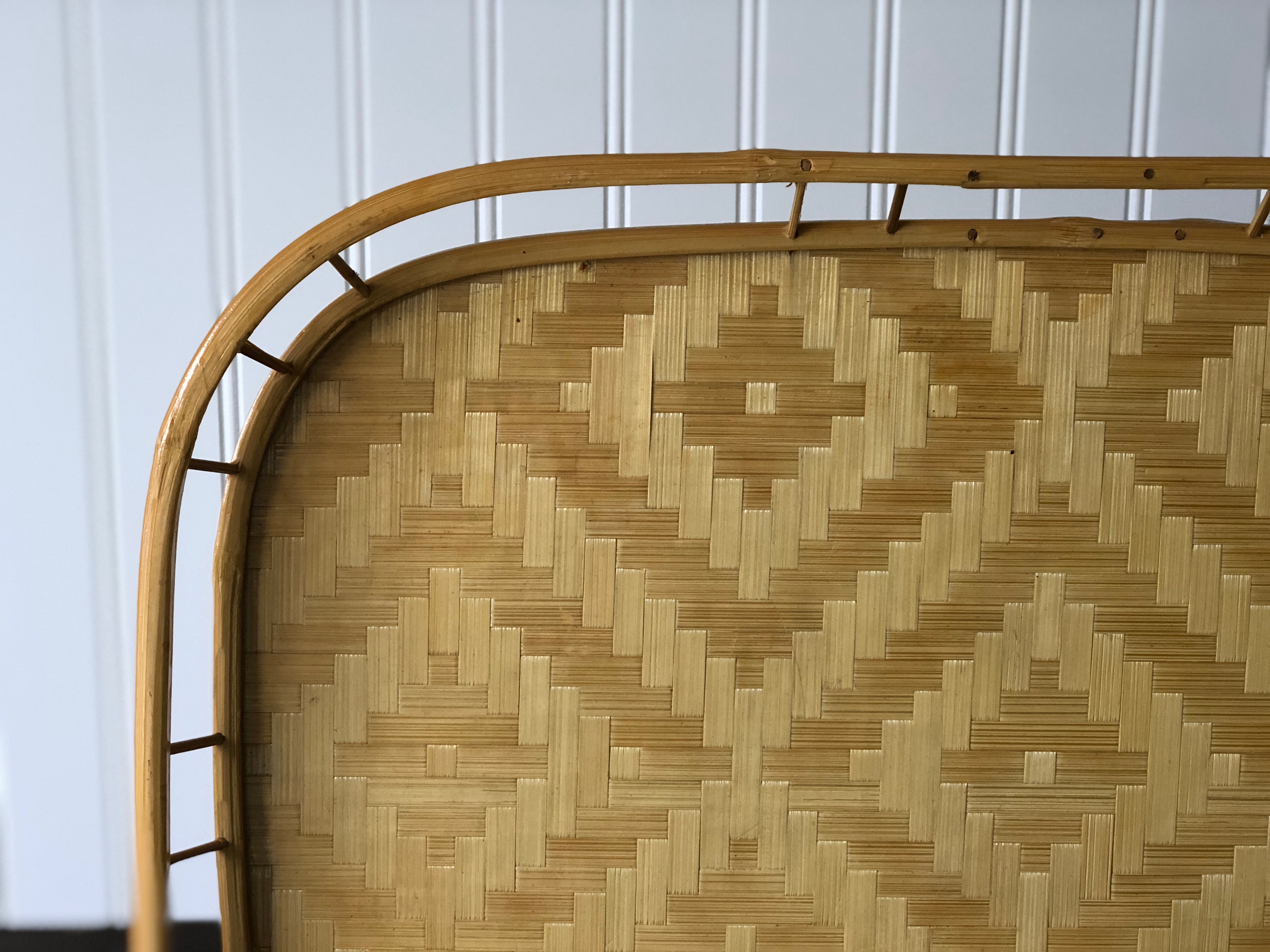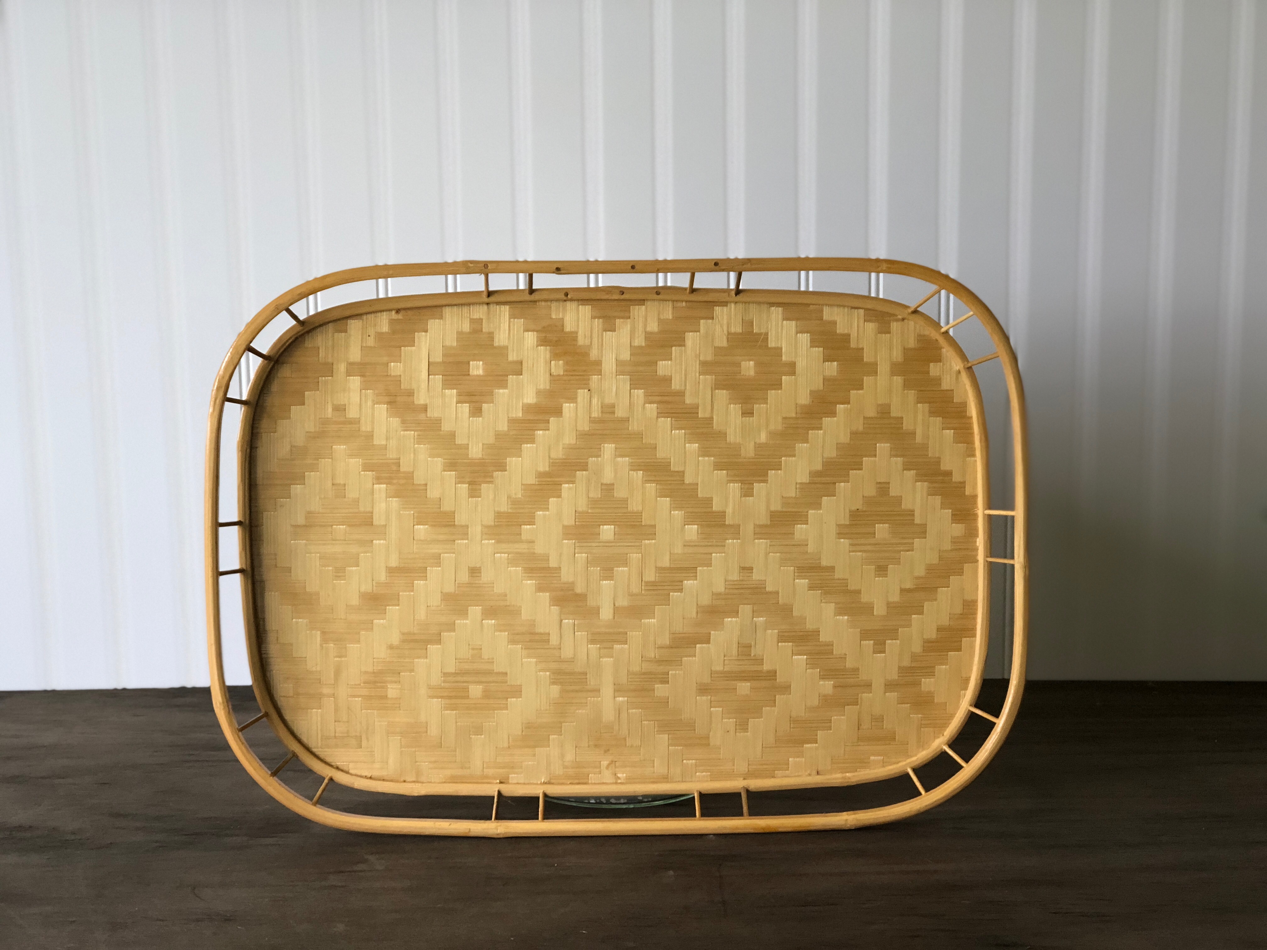 This beautiful woven tray has subtle geometric details. Create a lovely vignette or style for a centerpiece.